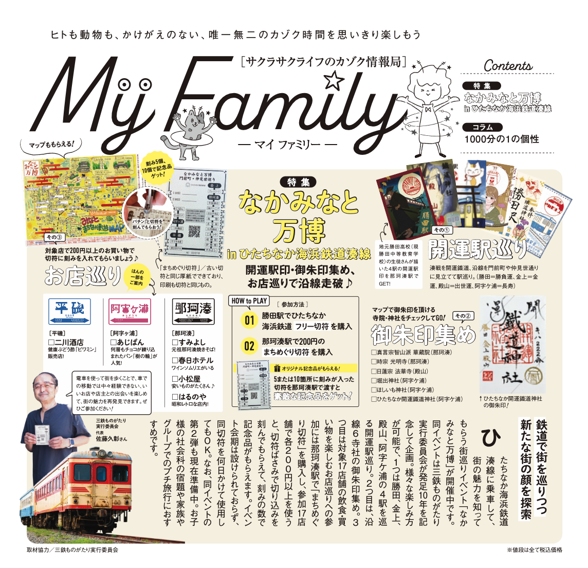 期間中は、ひたちなか海浜鉄道那珂湊駅で合言葉「三鉄」と伝えると鉄道グッズがもらえるほか、毎週土曜日は「那珂湊第壱車庫」(ひたちなか市東本町)で鉄道模型「Nゲージ」を走らせることができる。同車庫の来場者には、硬券型の入場記念証とオリジナルステッカーがプレゼントされる。