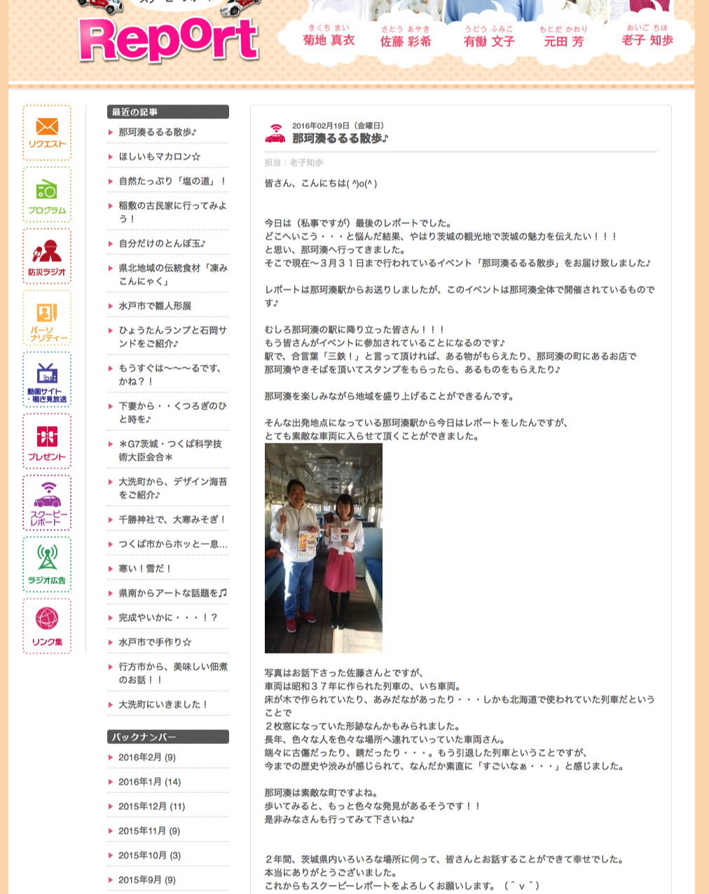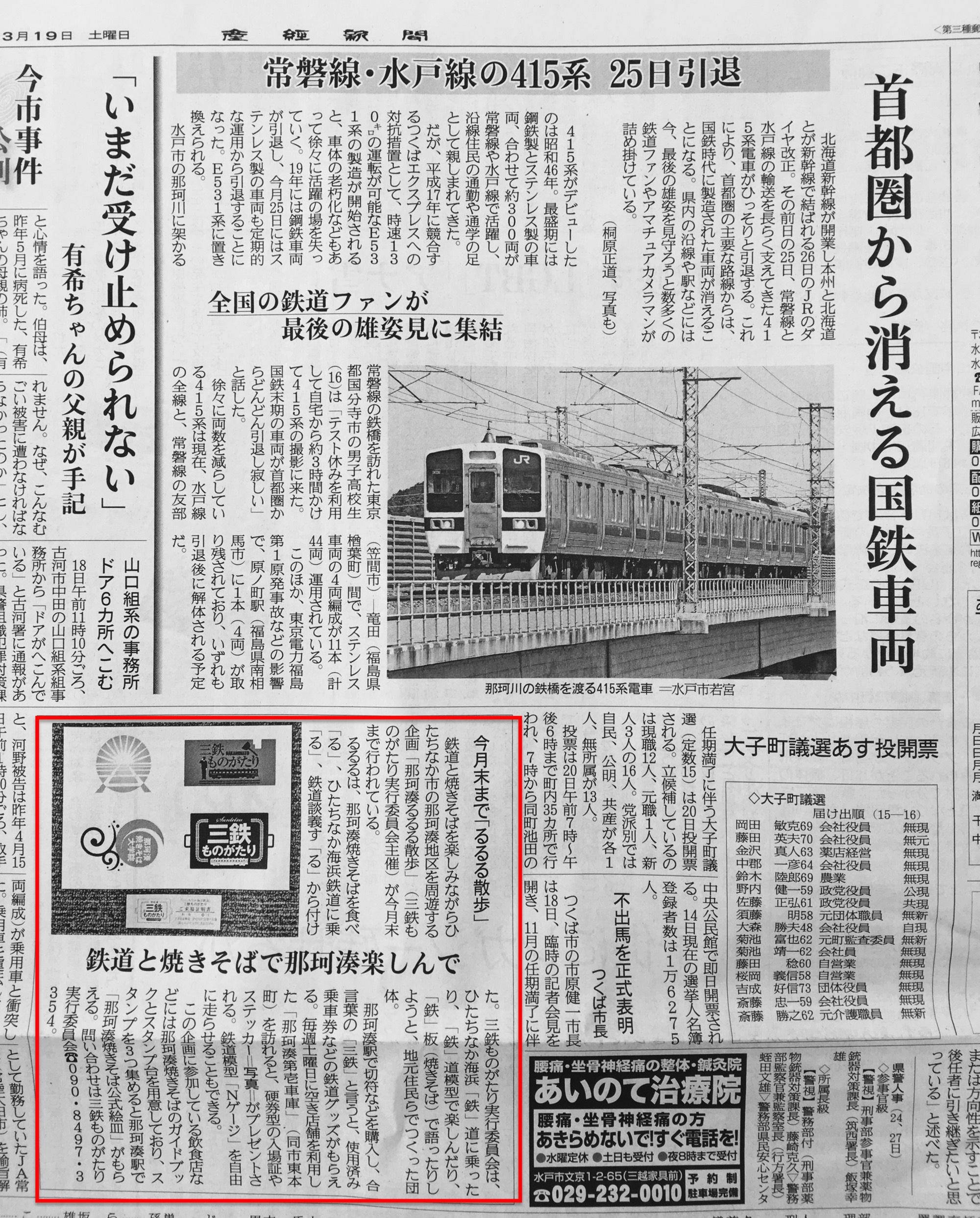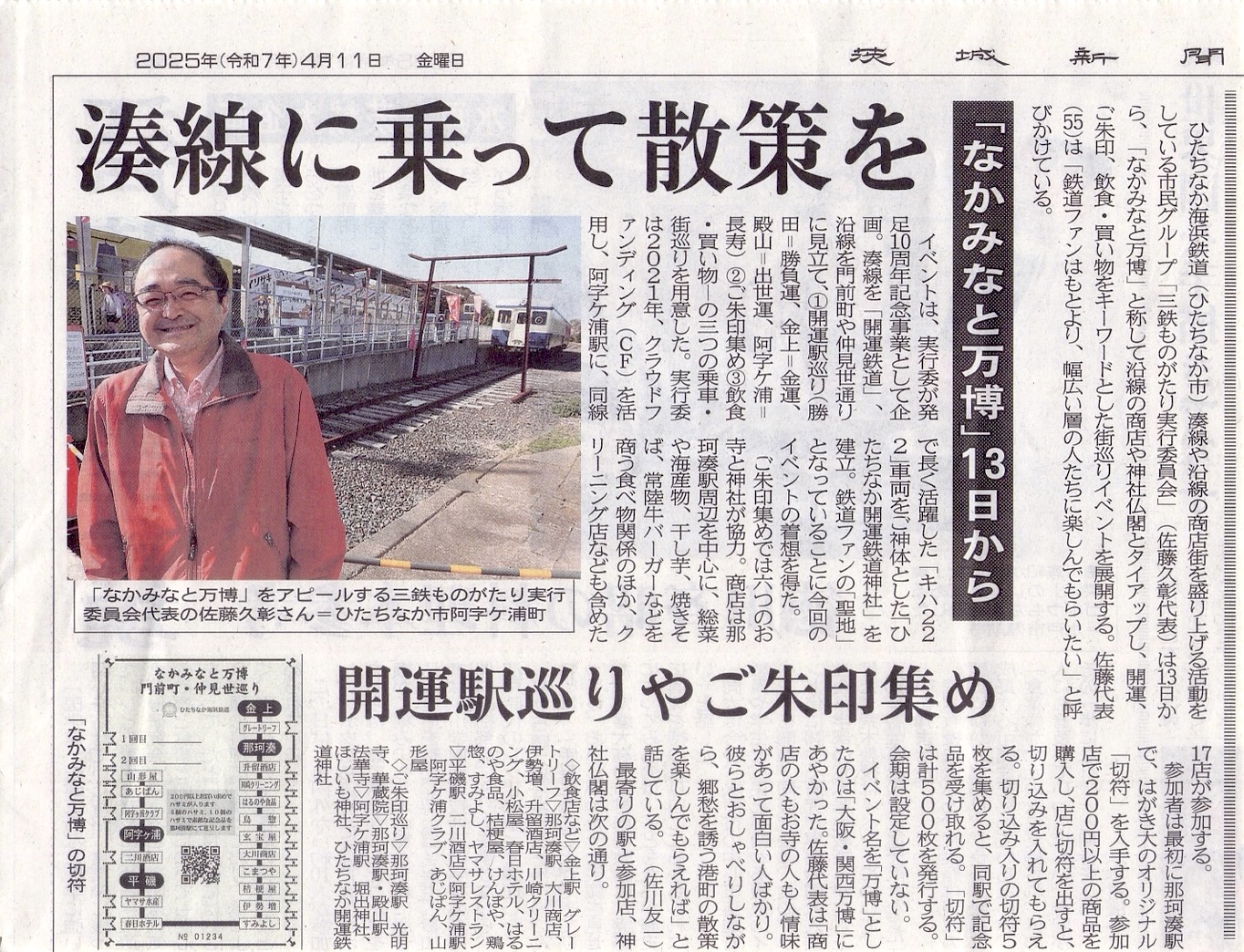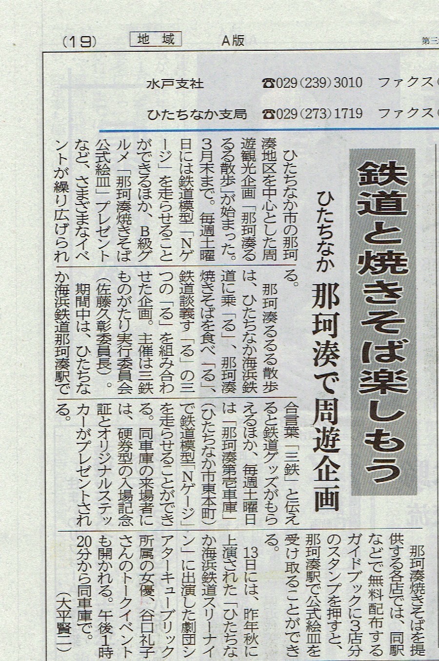 那珂湊るるる散歩は、ひたちなか海浜鉄道に乗「る」、那珂湊焼きそばを食べ「る」、鉄道談義す「る」の三つの「る」を組み合わせた企画。主催は三鉄ものがたり実行委員会(佐藤久彰委員長)。