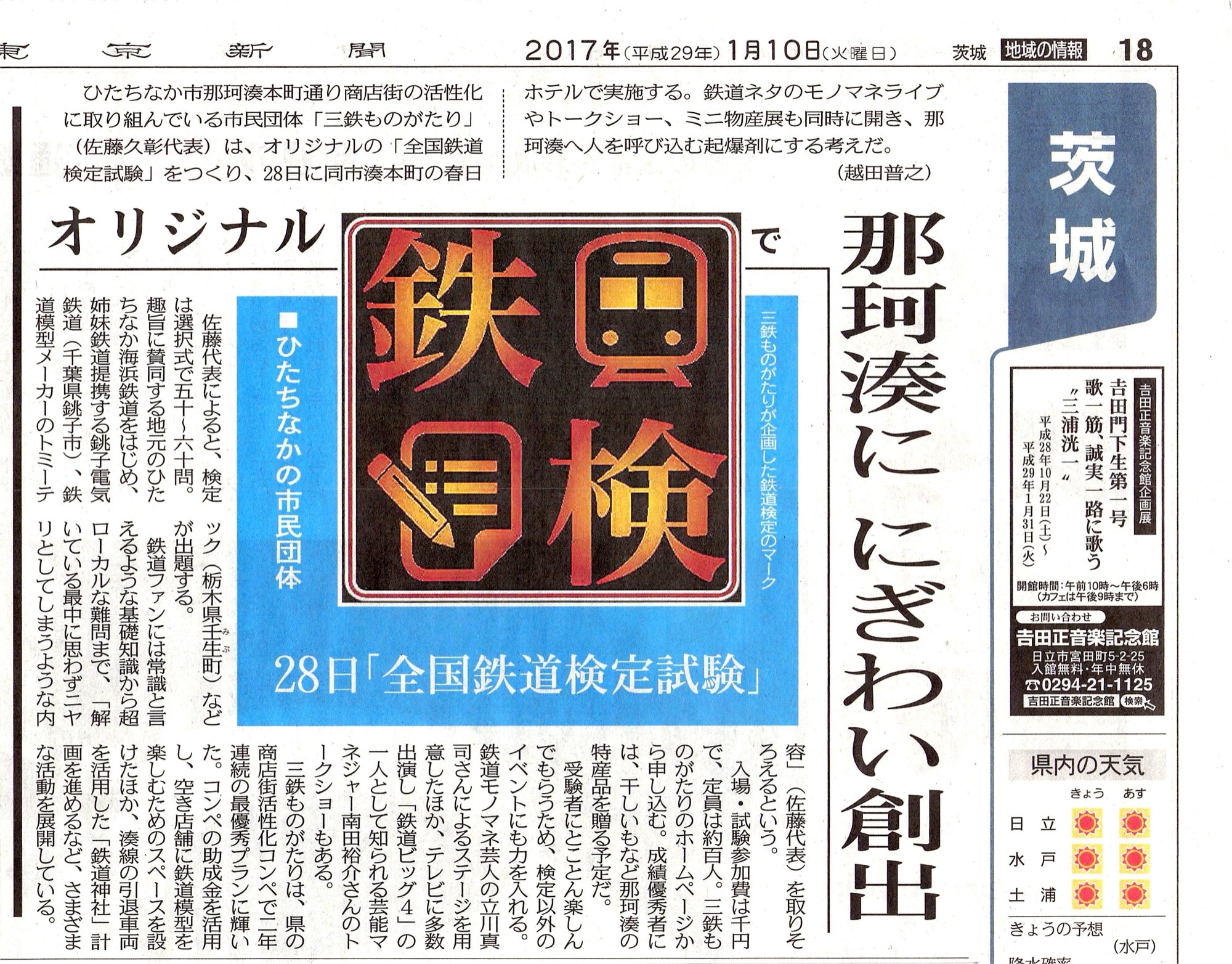 ひたちなか市の那珂湊地区を中心とした周遊観光企画「那珂湊るるる散歩」が始まった。3月末まで。毎週土曜日には鉄道模型「Nゲージ」を走らせることができるほか、B級グルメ「那珂湊焼きそば公式絵皿」プレゼントなど、さまざまなイベントが繰り広げられる。